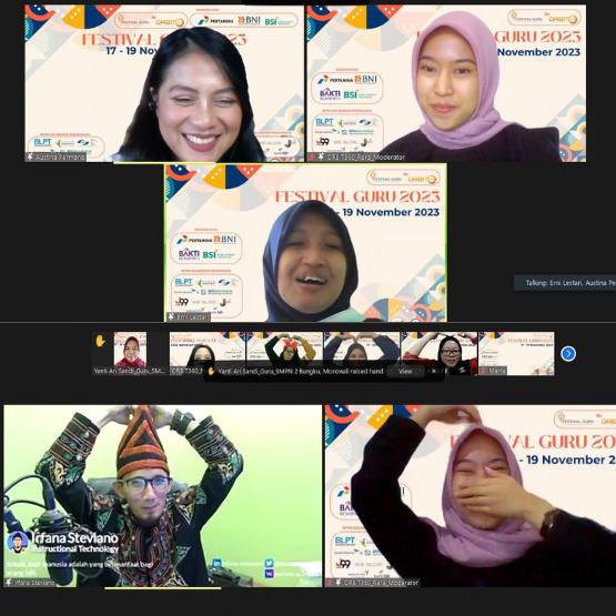 Pada Tanggal 17-19 November 2023 lalu, telah berhasil diselenggarakan Festival Guru yang pertama secara daring. Kegiatan ini memperoleh antusiasme yang sangat tinggi dari para guru dan berbagai pihak yang peduli peningkatan kualitas guru. Festival Guru 2023 menghadirkan: