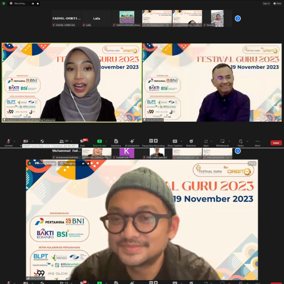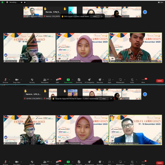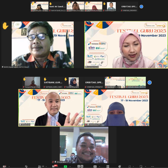 Pada Tanggal 17-19 November 2023 lalu, telah berhasil diselenggarakan Festival Guru yang pertama secara daring. Kegiatan ini memperoleh antusiasme yang sangat tinggi dari para guru dan berbagai pihak yang peduli peningkatan kualitas guru. Festival Guru 2023 menghadirkan: